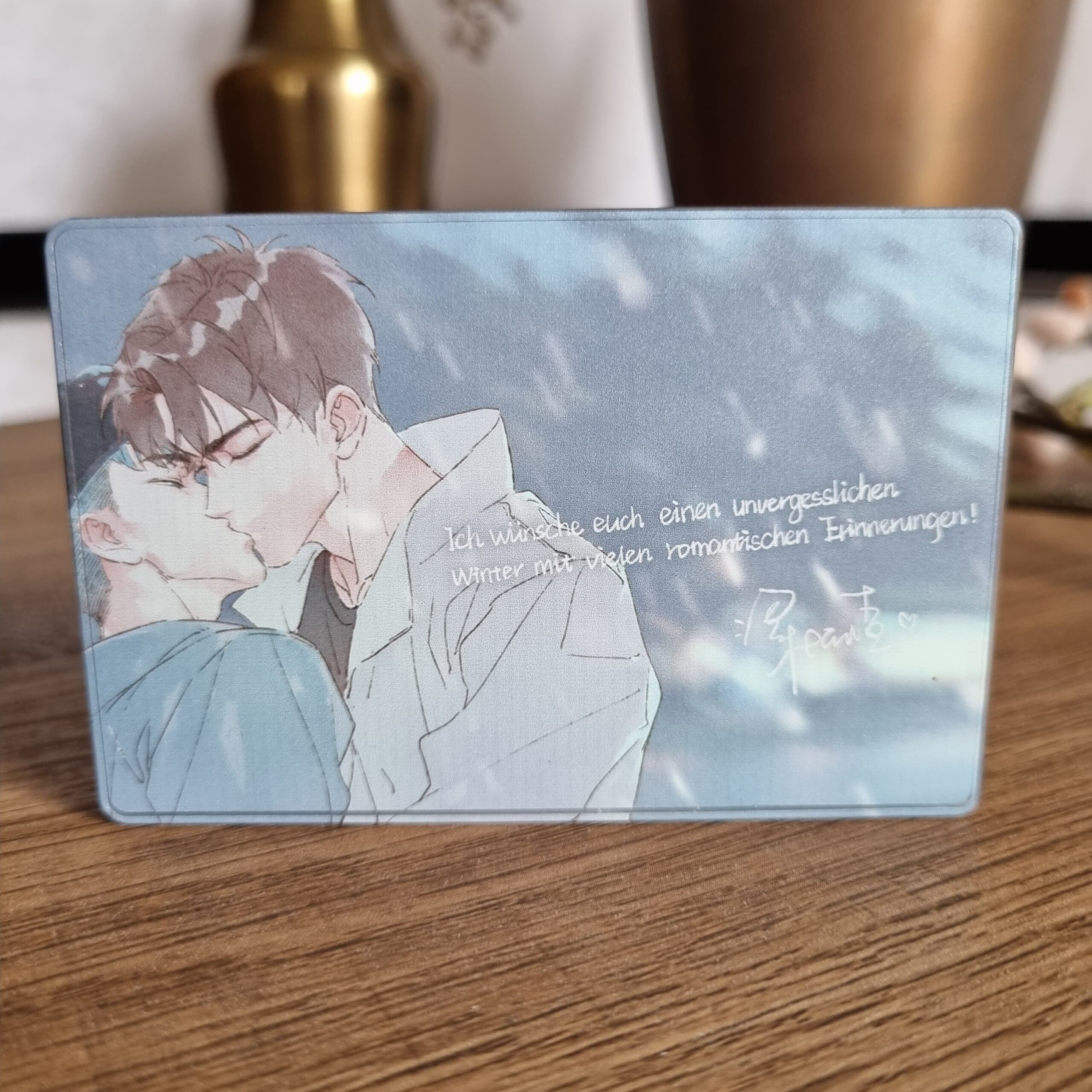 Exklusiver Acrylblock mit Wasser und Glitzer. Auf der Rückseite befindet sich eine Danksagung des Autors und Künstlers Liangazha.